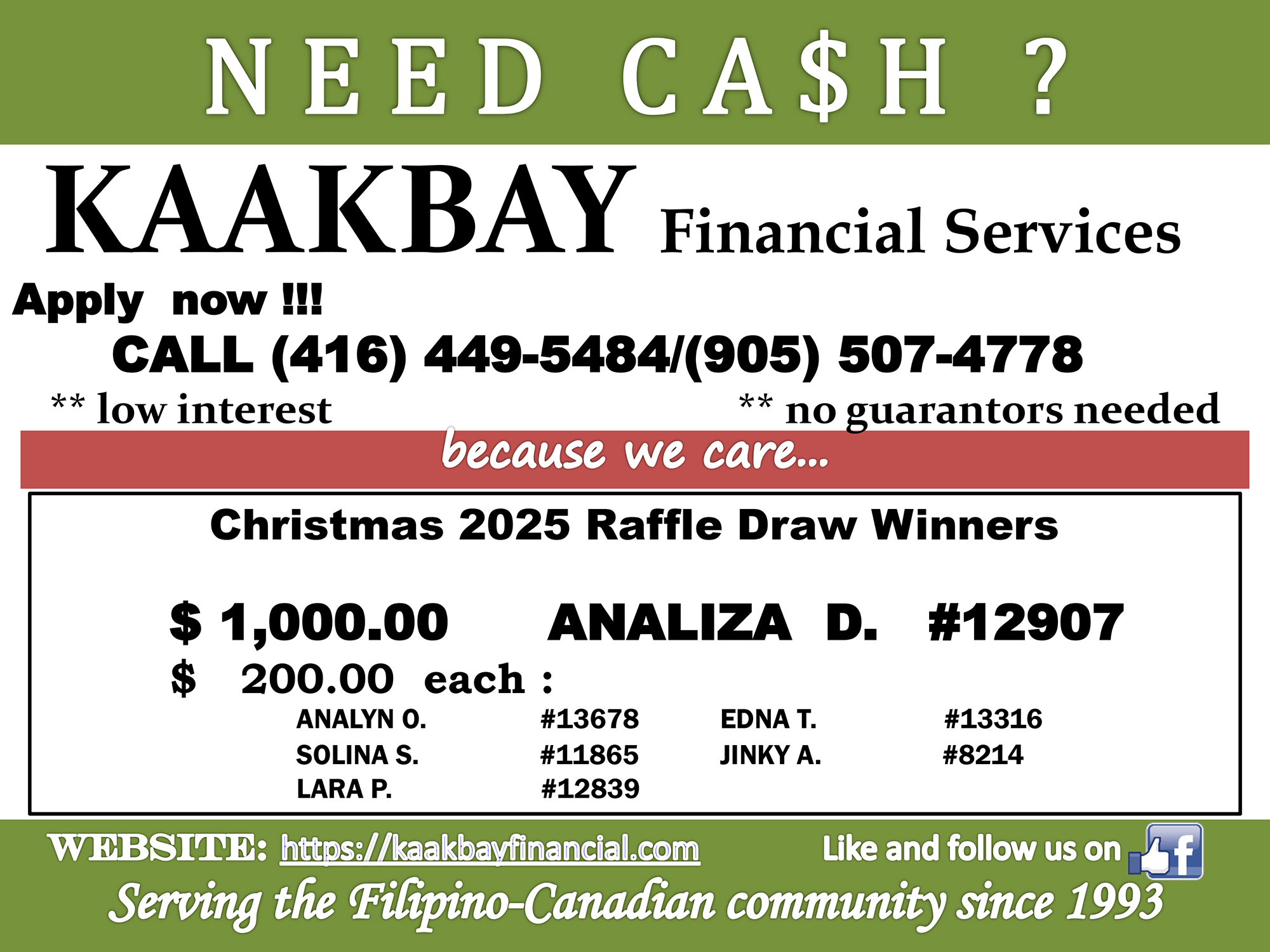 Kaakbay Financial Services, Inc. provides loans to caregivers, open permit holders, international students with full time jobs, permanent residents, Filipino-Canadians, Canadians.